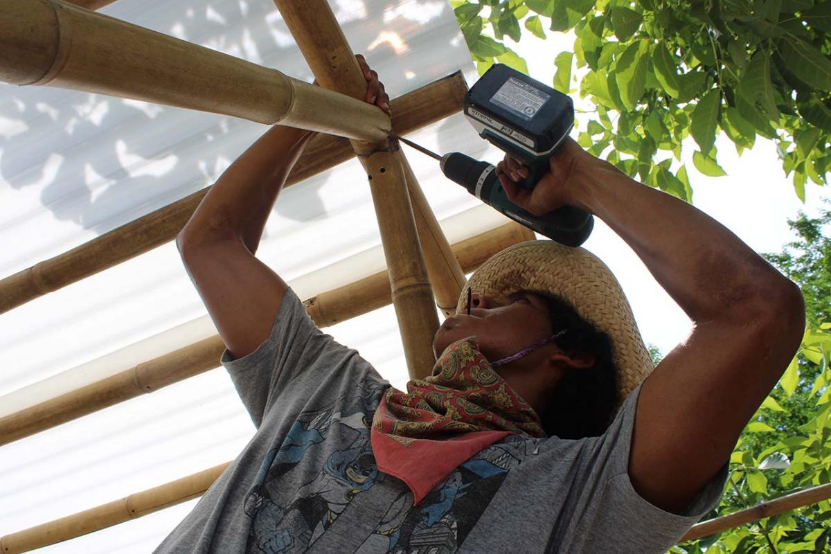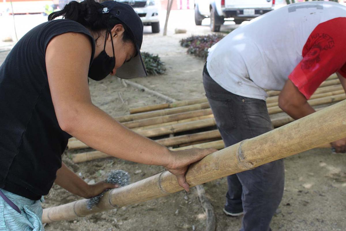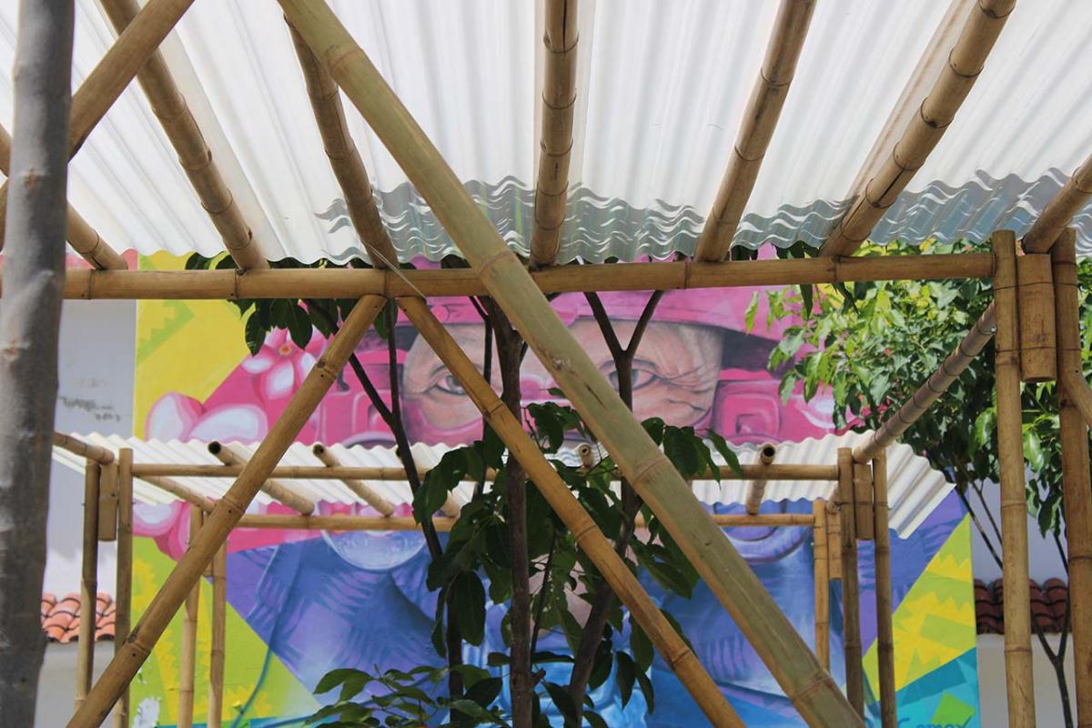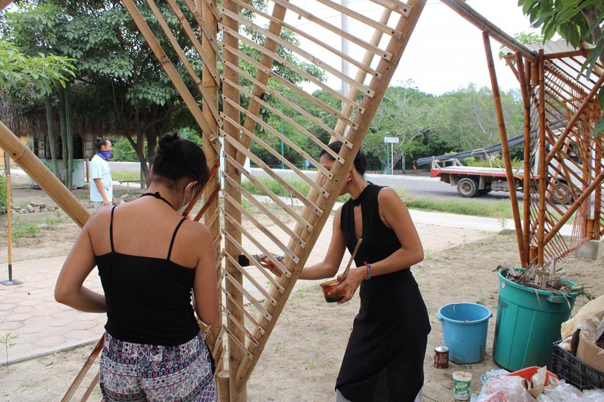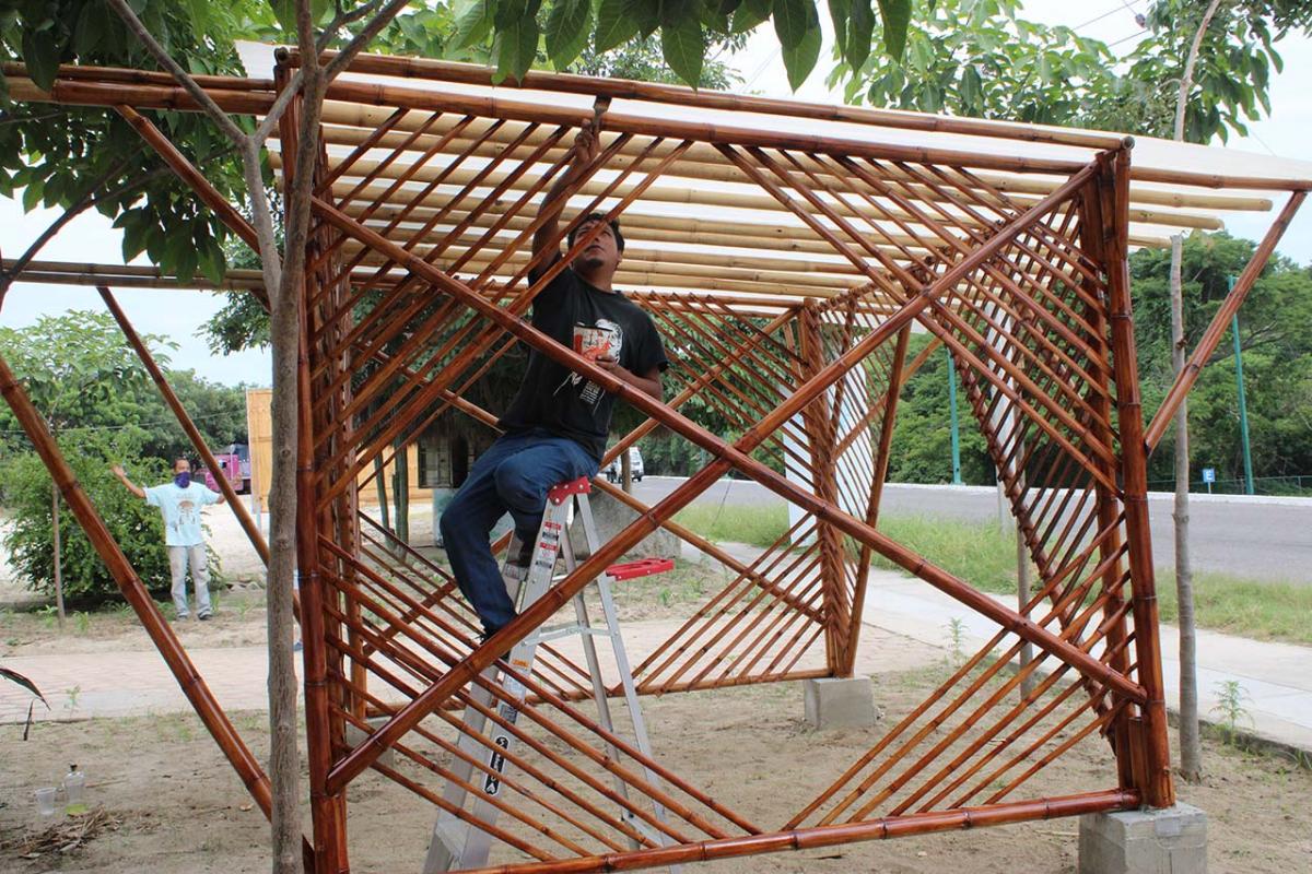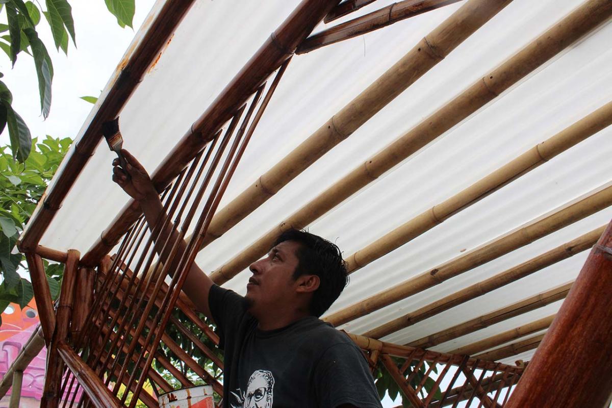 The covered part of the garden was built with local bamboo. The concept comes from Claudio Elias, a bioconstructor architect from Pluma Hidalgo, Oaxaca. Bamboo is a very versatile, fast growing material, ideal for ecological and sustainable construction. It is flexible and resistant, and has a low cost compared to other types of materials. It also has a low energy consumption, which helps bring the project closer to having a green footprint as much as possible.