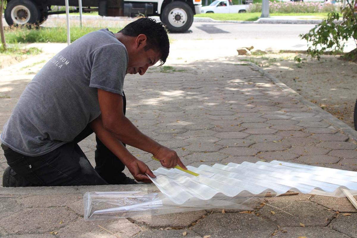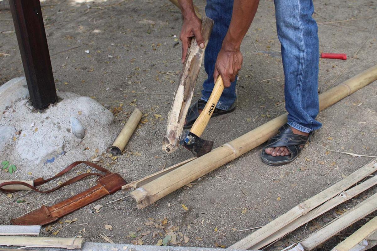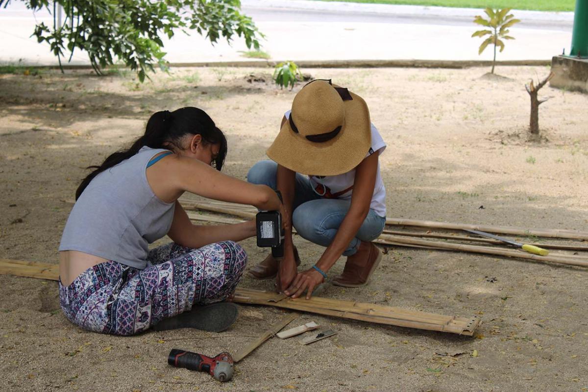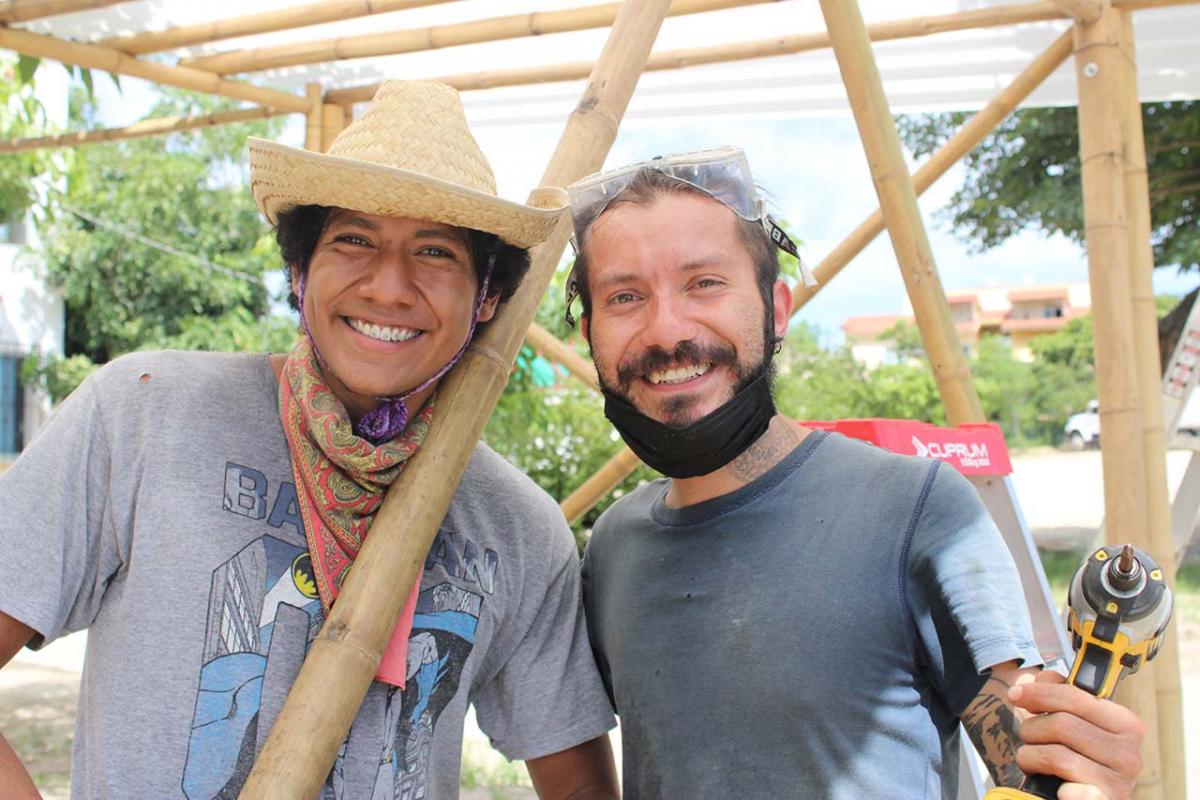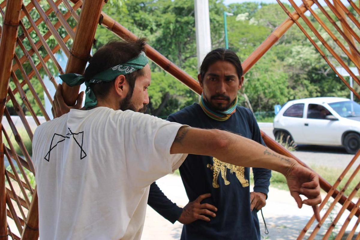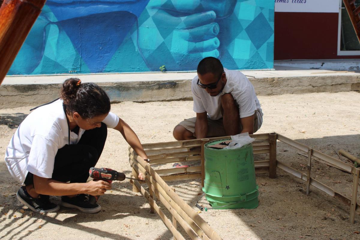 The covered part of the garden was built with local bamboo. The concept comes from Claudio Elias, a bioconstructor architect from Pluma Hidalgo, Oaxaca. Bamboo is a very versatile, fast growing material, ideal for ecological and sustainable construction. It is flexible and resistant, and has a low cost compared to other types of materials. It also has a low energy consumption, which helps bring the project closer to having a green footprint as much as possible.